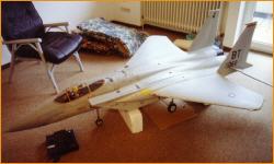 Dies war mein erster Jet im Jahre 1989. Ich habe ihn gebraucht gekauft von Wolfgang Kappler. Damals war das Modell entstanden aus einem Schleicher-Bausatz. Ausgerüstest mit 2 Bryon-Impellern (Seiler-Läufern) und zwei OS91DF.