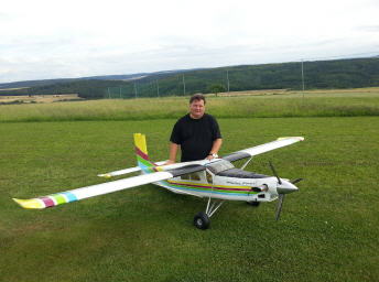 Es war schon lange ein Traum, mal eine Turbo-Prop zu fliegen. Ich habe ihn mir mit der Pilatus PC6 von Michael Bräuer erfüllt. Die Voll-GFK-Maschine hat eine Spannweite von 3,55m und ist ausgerüstet mit einer JetCAT SPT5. Nach anfänglichen Startschwierigkeiten (der Kero-Brenner wurde nicht heiß genug), ist das Laufverhalten ein Traum. Wie Elektroflug mit Geruch... ;-) Macht schon Spaß das Teil. .. Fliegen tut sie prima! Gerade die Landungen mit den vollgesetzten Klappen und der Wirbelstrombremse am Propeller sind sehr einfach.